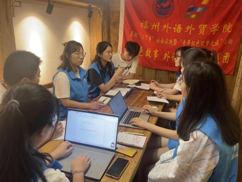 行程的最后一天在初心茶馆,郑晓静老师主持“红色故事 外语传播”实践团总结会议,会议将实践团成员分为英语、法语、西语三个组别,为后续以多语种形式讲述下党故事,开创福外助力乡村振兴事业发展新局面做准备。