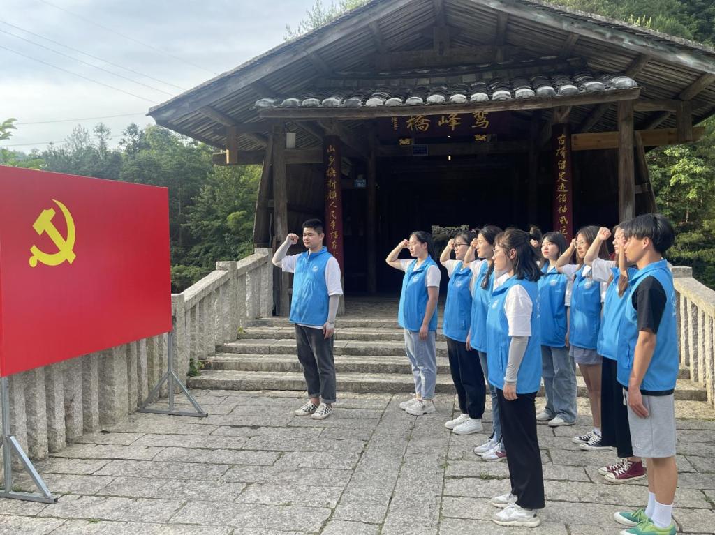 跟随着龚主任的脚步,实践团来到“世界单拱跨度最长的贯木拱廊桥”——鸾峰桥。1989年7月17日习近平总书记一进下党乡时,由于下党当时没有办公场所,所以该桥成为接待习近平总书记一行人的主要地点。实践团成员于鸾峰桥前,面向党旗,在外国语学院学生第一党支部书记陈巧煌的带领下,进行庄严宣誓,重温入党誓词,坚定理想信念。