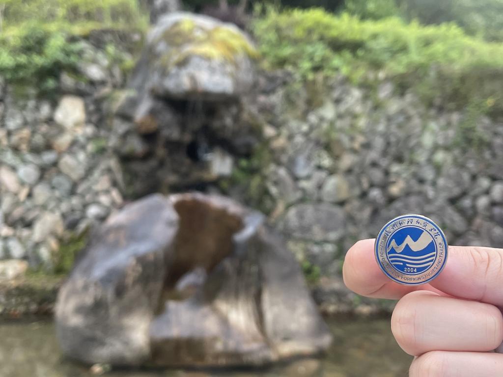 实践团前往“滴水穿石”主题公园进行参观学习,园内坐落“滴水穿石”“弱鸟先飞”“久久为公”三块石碑,石碑上以中英双语形式详述其中含义,实践团成员利用专业知识进行二次翻译加深印象。