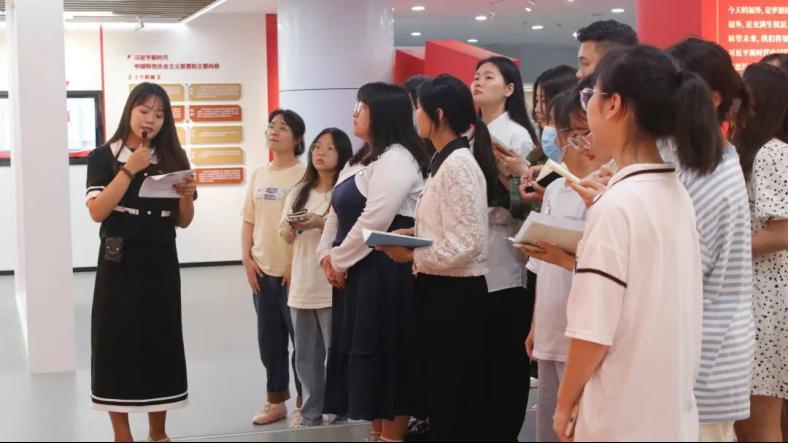 为深入贯彻落实党的二十大精神和“学思想、强党性、重实践、建新功”主题教育总要求,发挥党建引领作用,助推党史党建教育入脑入心。5月31日,外国语学院分党委在校党建教育馆开展现场教学活动,学生第二党支部书记郑陈婷主讲,全体学生党员参加学习活动。