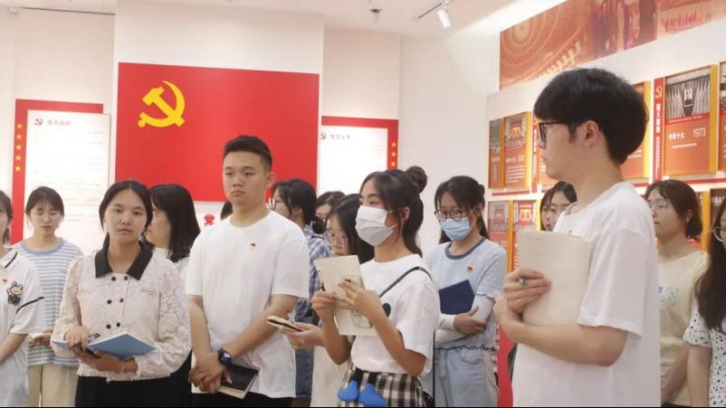在现场,大家依次参观了馆内领航篇、领悟篇、百年辉煌、践行篇等内容版块。在馆内领航篇版块,大家通过诵读“十个明确”“十四个坚持”“十三个方面成就”等对习近平新时代中国特色社会主义思想进行了深入学习,并通过互动触摸屏翻看习近平新时代中国特色社会主义思想的内容,进一步强化理论学习。期间,郑陈婷老师带领同学们重温入党誓词,铿锵有力的宣誓声响彻场馆。