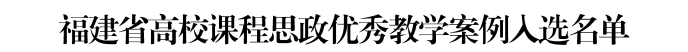 据悉,为全面推进我省高校课程思政高质量建设,汇聚福建省课程思政领域专家学者,充分发挥优秀典型案例的示范引领作用,福建省高校课程思政教育联盟在省教育厅指导下,组织开展了课程思政专家库建设及优秀教学案例征集工作。经各成员高校申报、联盟组织专家组评审,确定101名专家入选福建省课程思政专家库、109个案例入选福建省课程思政优秀教学案例。