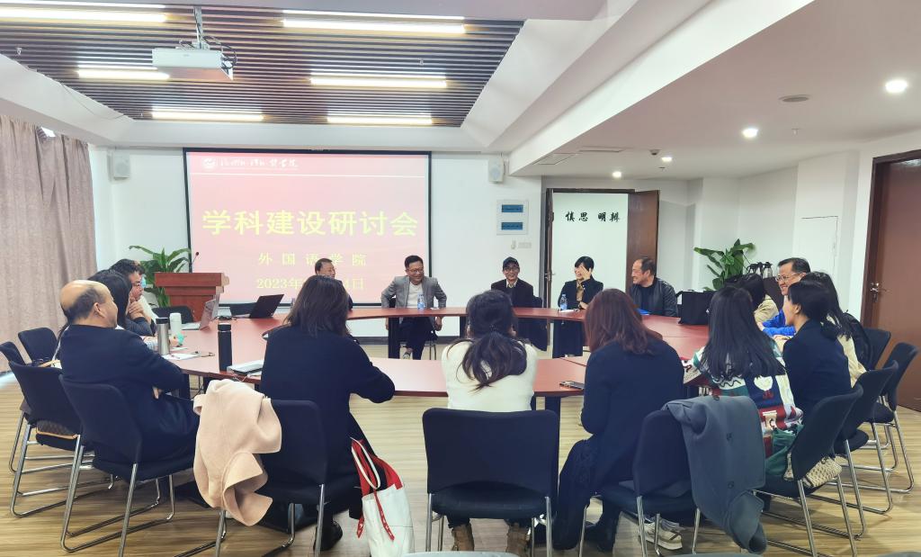 随后,我院在教师发展中心多功能研讨室组织召开了学科建设研讨会。院长赵会军教授主持会议,国际关系学院原副校长兼外语学院院长郭惠民教授、中共中央党史和文献研究院研究员俞晓秋教授、福建技术师范学院外国语学院副院长肖晶教授、福州外语外贸学院研究与发展中心主任吴钦缘教授受邀出席本次会议。学院领导、各系主任、骨干教师参加了本次研讨会。