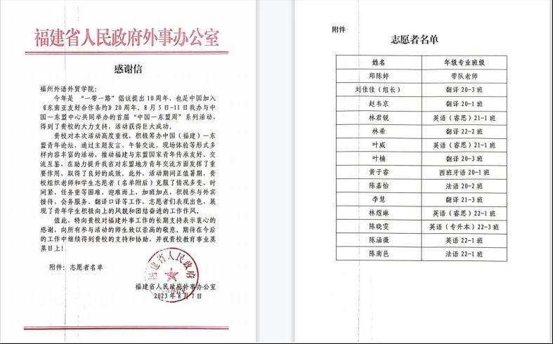 翻译20-3班刘佳佳:非常感谢省外办和学校给予我这次机会,我也十分荣幸能够参与到“中国—东盟周”的系列活动中。本次志愿活动,尽管辛苦但获益良多,提高了我沟通协调、组织能力。同时,在参加活动的过程中,开阔了自己的眼界,感受到不同国家文化的魅力。看到自己的努力得到肯定,感到十分满足。参与此次志愿服务是一段十分宝贵经历,让我受益匪浅。