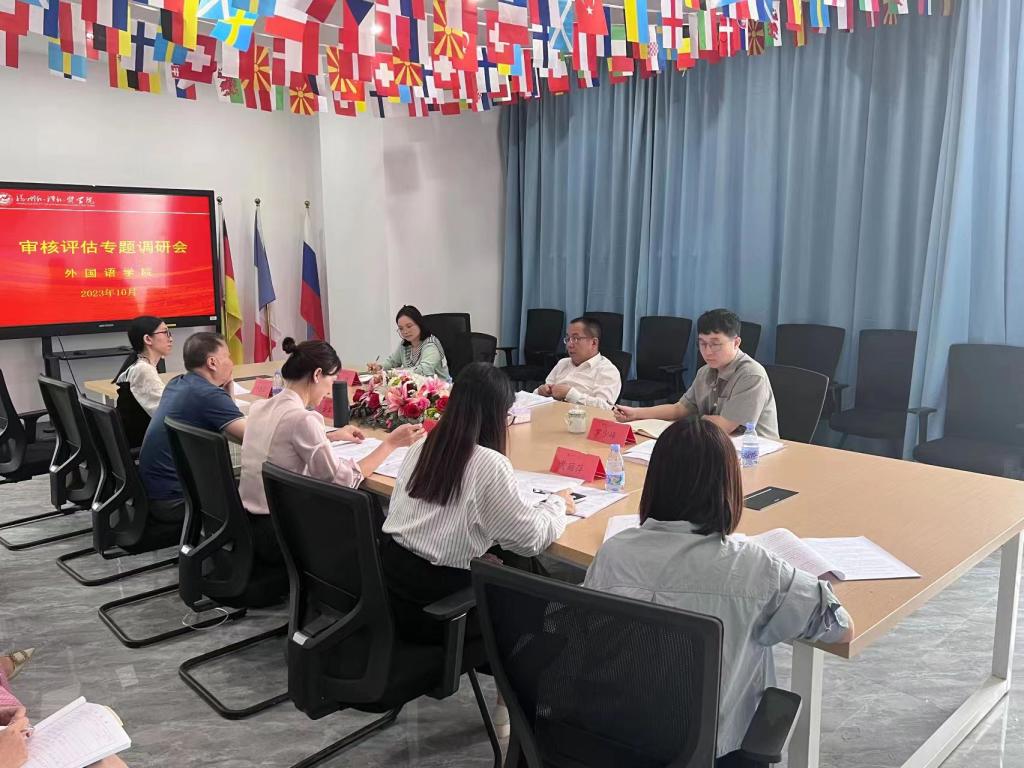 黄建平校长听取汇报后,就新一轮本科教育教学审核评估指标体系进行了深入解读,并对我院的审核评估工作提出了指导性意见,他指出,学院要高度重视审核评估工作,从顶层设计出发全面分析评估指标体系,根据学校办学定位、人才培养目标和社会需求加强专业建设,深入凝练“外+”办学特色,不断完善人才培养方案,提高人才培养质量;要进一步健全评建工作保障机制,强化评建工作与日常教育教学工作相结合,认真对标对表,深入开展自评自建;要凝聚共识、齐心协力、强化责任担当,全力推进审核评估走深走实,切实提高人才培养质量。