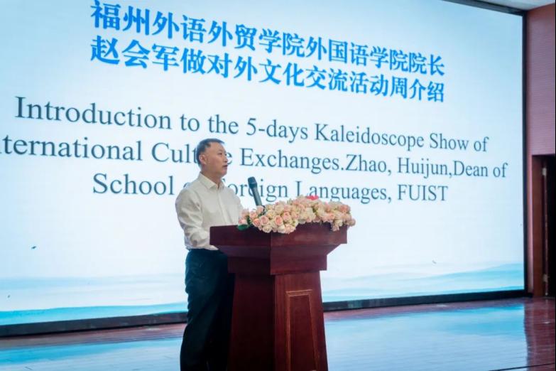 外国语学院院长赵会军介绍了本次活动的主题及活动日程。他表示,本次活动为来自不同国籍、不同民族的中外人士提供了交流的平台,希望来宾及师生们在丰富的活动中,充分领略文化交流的魅力。