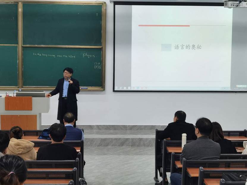 12月4日,上海大学博士生导师赵彦春教授为在我院开展开元网页版“语言的奥秘”的讲座,学院相关专业教师和翻译系学生参加讲座。