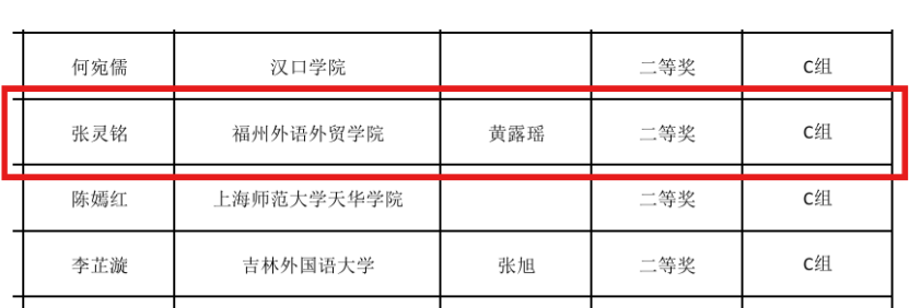 近日,由中国寓言文学研究会教育教学专业委员会主办的“中国故事大赛·双语中国” 2024全国大学生外语翻译大赛落幕,本次大赛设有一等奖、二等奖、三等奖、优秀奖。经过激烈的角逐,我院23级翻译专业学生张灵铭,在黄露瑶老师的指导下,在中英互译赛道C组荣获了二等奖的佳绩。中国寓言文学研究会教育教学专业委员会面向全国在校大学生举办“‘中国故事大赛·双语中国’2024全国大学生外语翻译大赛”,旨在促进学生英语翻译能力的提升,调动学生提高翻译及应用技能的积极性。我们期待未来有更多学子在英语竞赛的舞台上展现才华,为校争光!让我们一起在英语的海洋中乘风破浪!
