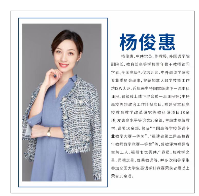 近年来,英语专业教学团队建设省级重点课程近10门,其中《英语国家社会与文化课程》《外事礼仪》为国家级一流本科课程, 《英语国家概况》《外经贸英语函电》《国际贸易单一窗口》《“山海协作”教育帮扶促振兴高级英语视听说虚拟仿真实验》等为省级一流本科课程。共发表教研论文60余篇,主持教改课题20余项,主编或参编教材17册。教师获全国外研社“教学之星”大赛国家级二等奖、省级教学成果奖二等奖,多人次在各类教师教学竞赛中获得省级特等奖、一等奖。