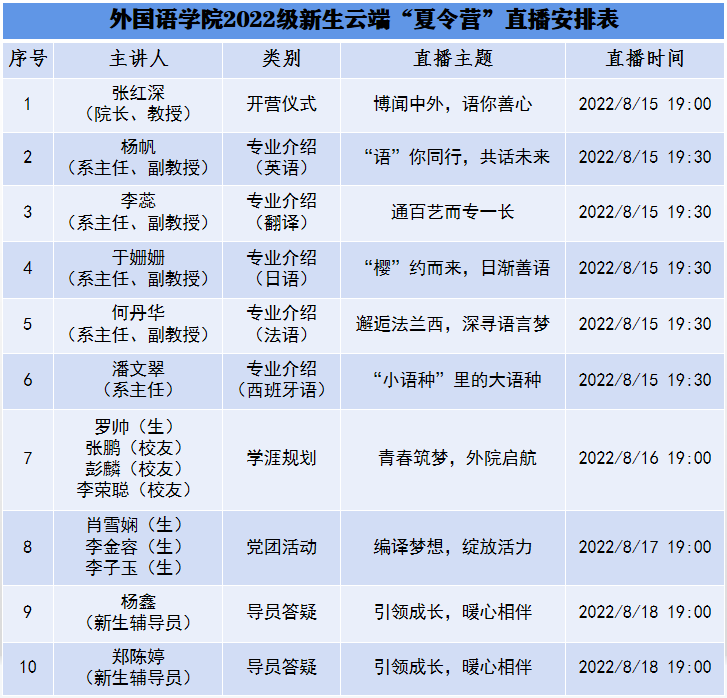 云端“夏令营”直播安排
