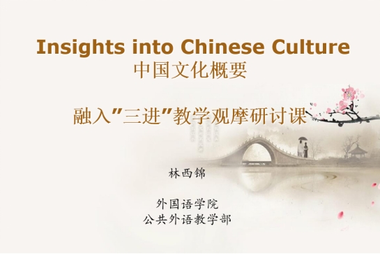 为深入贯彻落实《习近平谈治国理政》多语种版本“三进”工作,将习近平新时代中国特色社会主义思想融入我校大学外语教学研究和人才培养全过程,外国语学院开展融入“三进”等系列观摩课。2023年3月7日上午,由外国语学院公共外语教学部林西锦老师主讲“《中国文化概要》融入‘三进’教学观摩研讨课”在人文2203热烈开展。外国语学院不少教师参与本次观摩研讨课。