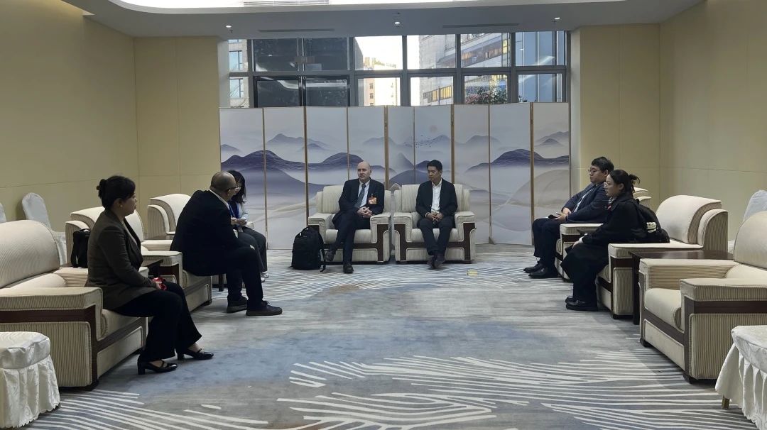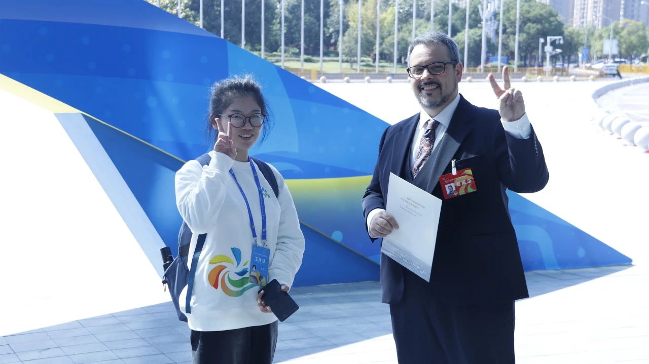 21级翻译专业刘泽夫,大会期间主要负责联系科斯塔斯教授(塞浦路斯欧洲大学前校长、中国社会科学院-塞浦路斯欧洲大学中国研究中心塞方主任)、对接教授的行程安排及各项事务,且作为随行口译参与领导会面交流及各项活动。