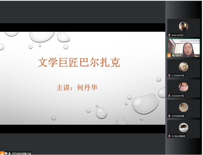2022年12月24日周三下午,法语系系主任何丹华老师在腾讯会议平台上为2022级、2021级和2020级的法语专业学生开展了《文学巨匠巴尔扎克》的通识性文化讲座。