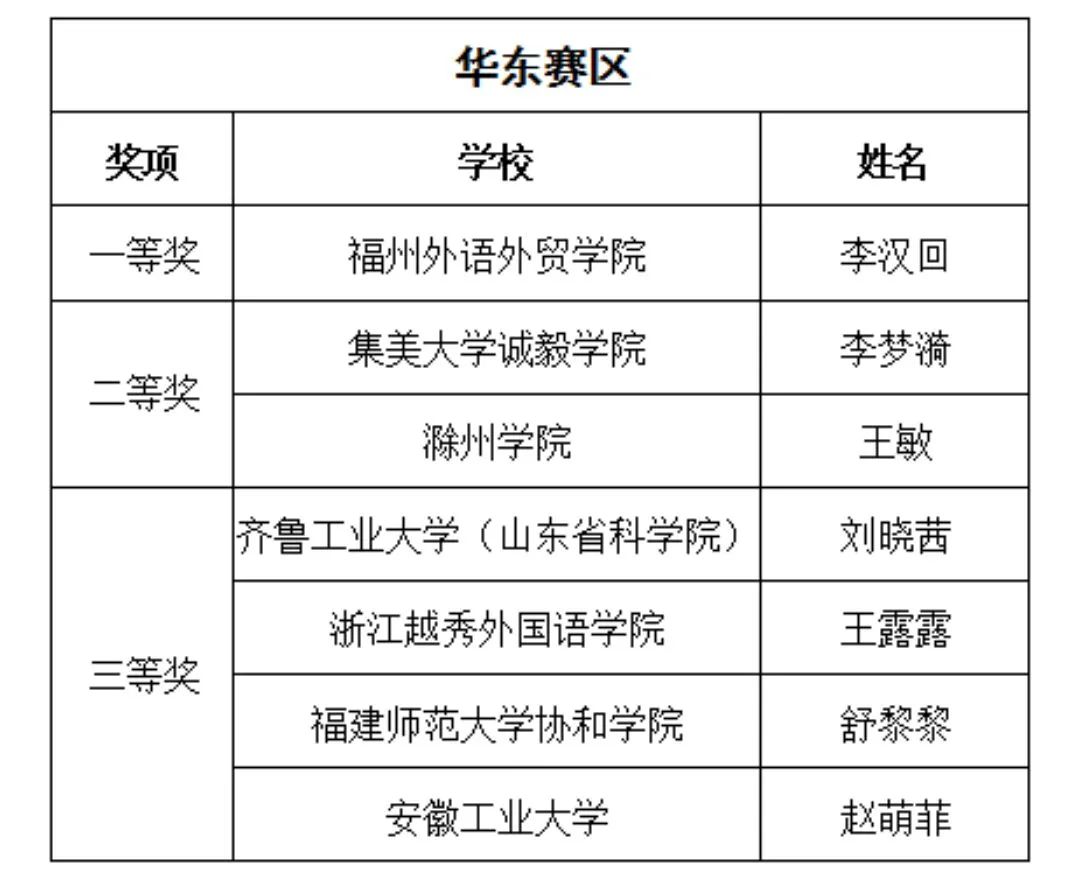 经过层层选拔、多轮评审,外国语学院翻译系李汉回老师荣获第十二届“外教社杯”全国高校外语教学大赛翻译专业组华东赛区一等奖。“外教社杯”全国高校外语教学大赛始创于2010 年,是我国最早举办的全国性外语类教学大赛。大赛覆盖全国各省市共千余所高校,因其严谨、创新、公正、权威,获得了外语界的一致赞誉和教育主管部门的高度评价,在中国高等教育学会发布的《全国普通高校教师教学竞赛分析报告(2012-2020)》中位列外语类教学比赛首位。