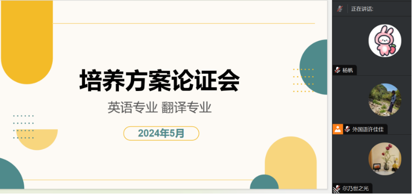 校友代表英语专业毕业生张芷尹及英语翻译专业相关师生担任论证专家