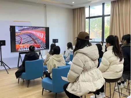 活动伊始,同学们一同观看英语版《二十大报告》的影像,帮助同学们温习了党的二十大报告中的一系列新观点,新论断,新思想。