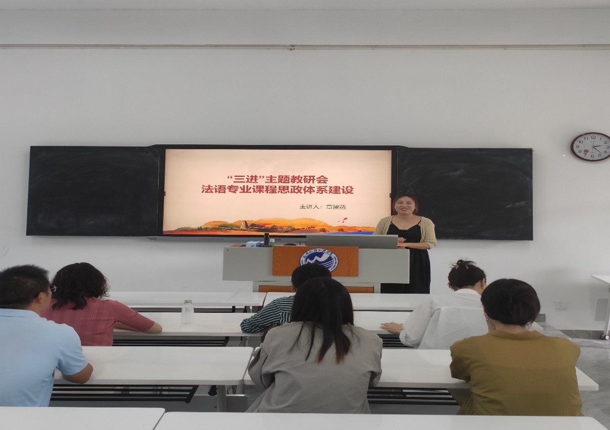 10月10日周二下午,我院法语系主任章赟菡在人文2号楼204召开“三进”主题系列之法语专业课程思政体系建设专题研讨会,法语系全体教师均出席了本次会议。讲座主要围绕外语专业课程思政的内涵、法语专业课程思政体系建设思路及建设路径三方面内容展开。章赟菡提出,立德树人是教育的根本任务,外语人才作为连接中国与世界的桥梁,外语专业教师更应该承担起这一历史使命,将价值引领融入课程设计,培养学生讲好中国当代故事的能力,紧扣“问题+目标+结果”的成果导向原则,落实课程教学与课程考核的实际改革,让语言教学与课程思政同向同行,培养出一批真正合格的外语人才。会上,章赟菡老师还结合了《法语听力》课程思政设计进行案例分享,其他教师也针对此案例展开了热烈的讨论。