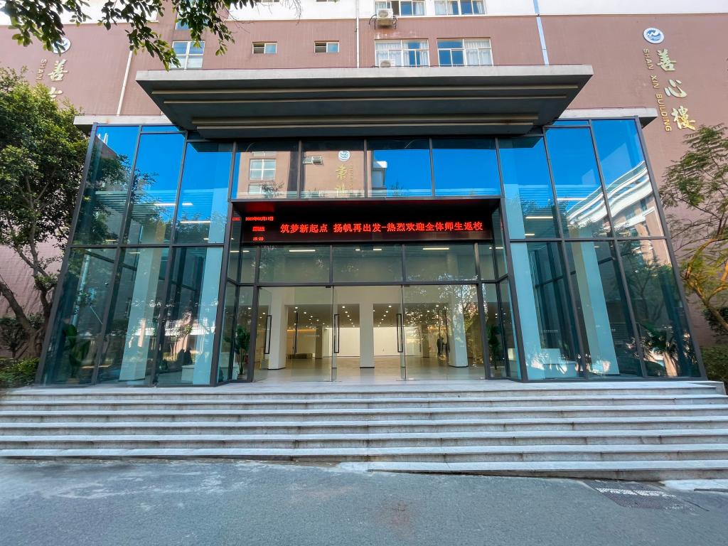 是艺术类专业实验室的集中区原先普通的门面略显默默无闻此番改造大门采用落地玻璃增加自然采光的同时颜值还提升了不少