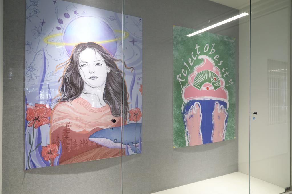 灰白色调尽显淡雅其中展示同学们的作品在射灯的照耀下分外夺目