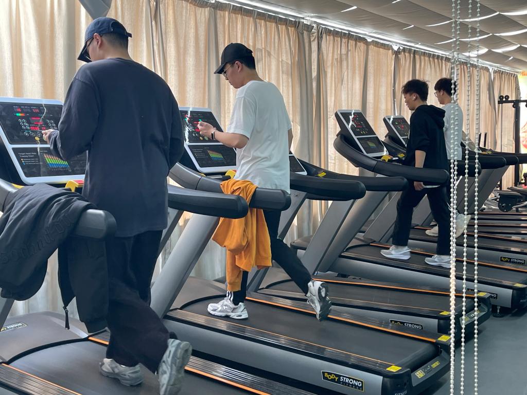 馆内设施也进行了更新看着在跑步机上热身的青春背影