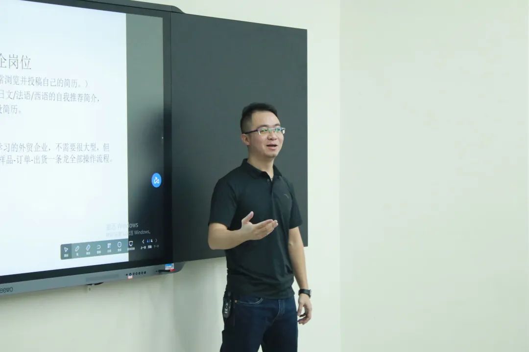 9月21日上午,李荣聪先生为学院2020、2021级的同学开展了就业创业讲座。会上,李会长为同学们讲述了学院各类外语在全球的应用以及外贸出口中国制造的广泛性,尤其强调小语种的应用广泛性,同时也教授同学们针对外贸行业该如何一步步创业,以及结合市场需求引导外语类学生未来的就业方向。随后,他为2019级的同学召开了企业招聘宣讲会,在介绍泰茂公司基本情况及用人需求后,同学们积极投递简历,并就未来如何从事外贸行业相关工作向李会长进行了请教,现场气氛热烈。