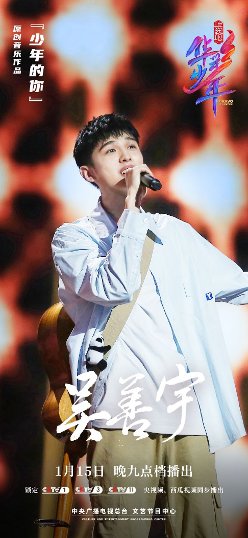 近日,《上线吧!华彩少年》初舞台创演在CCTV-1央视综合频道播出,来自我校艺术与设计学院的校友吴善宇用原创音乐作品《少年的你》惊艳全场,综合文化课笔试和初舞台创演成绩之和,喜获初舞台第一名!