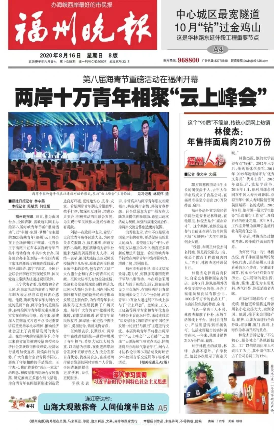 作为一名党员和退伍军人,出于对家乡特色小吃的继承与热爱,他一直想把自己家乡的尚干美食、尚干文化、尚干精神推广到全国。毕业后,他带着一股振兴家乡小吃的情怀,凭借在校期间积累的国贸专业知识和工作经验,开始了筹办福建尚福食品有限公司、推广家乡“拌面扁肉”的征途。