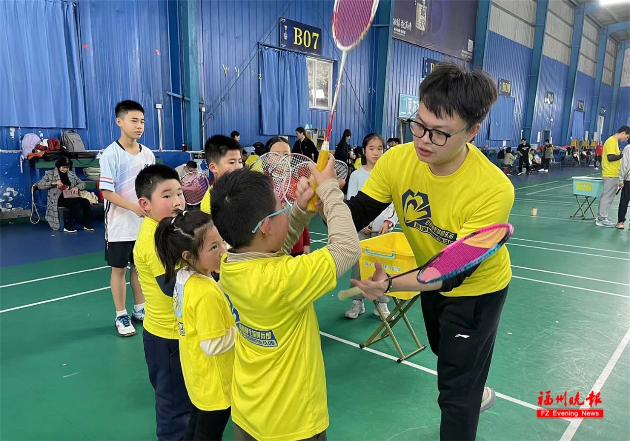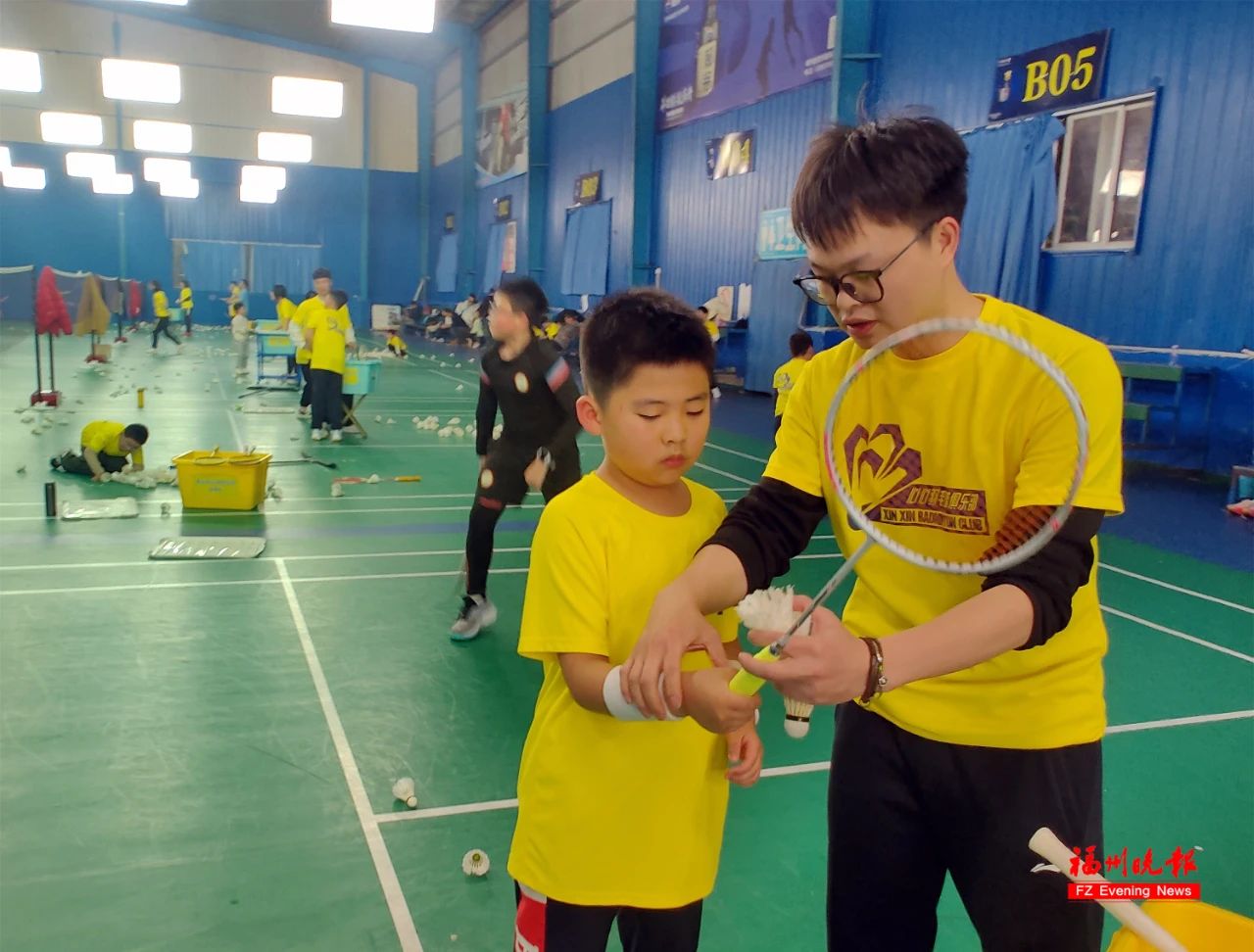 周末的闲暇时间,黄晓林会在球馆教学生打球。记者 叶诚 摄