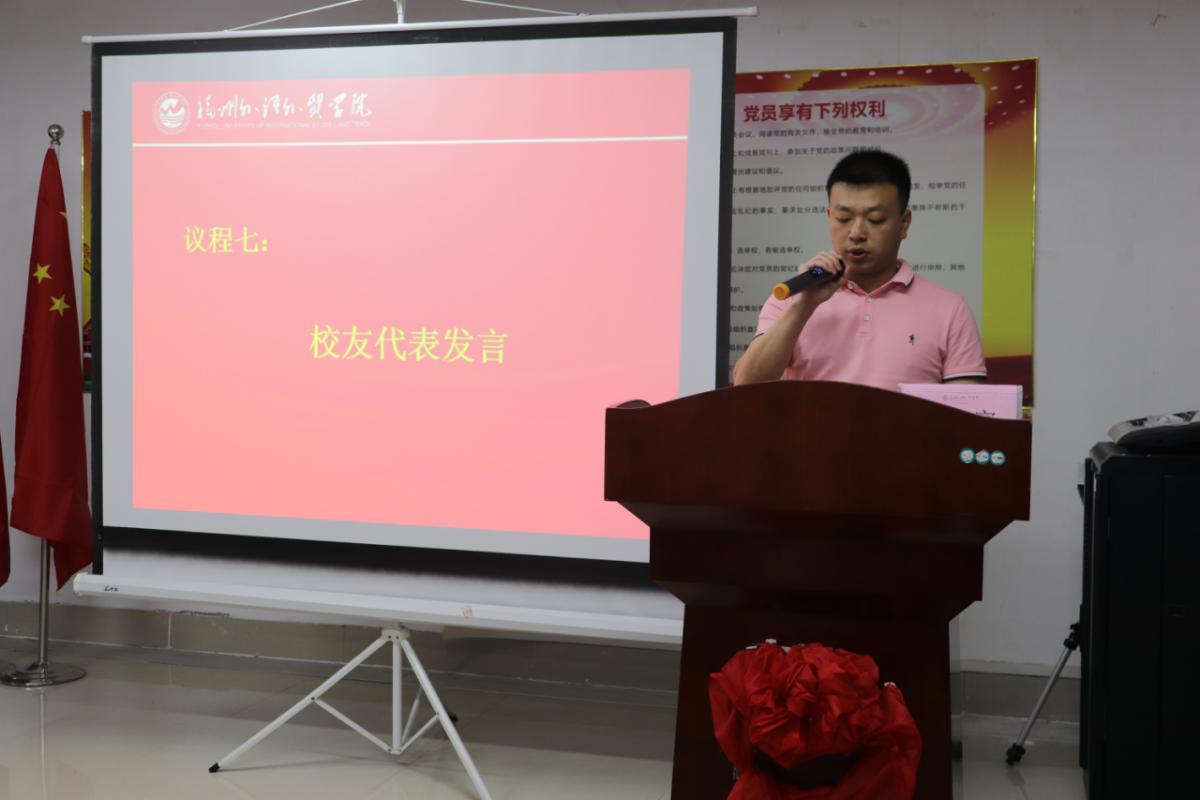 会上宣读了《经管学院校友分会成立的批复》《经管学院校友分会第一届理事会成员名单》《经管学院校友分会章程(草案)》。经管学院校友分会会长陈忠为经管学院校友分会成立揭牌,并为第一届理事会成员颁发聘书。厦门研硕电子科技有限公司总经理、校友池昌波担任副会长,他代表广大校友祝贺母校15周年校庆,感谢母校对历届校友的培养,并号召广大校友弘扬母校“崇德、勤学、求实、创新”的优良校风,用优异的成绩回报学校和社会。