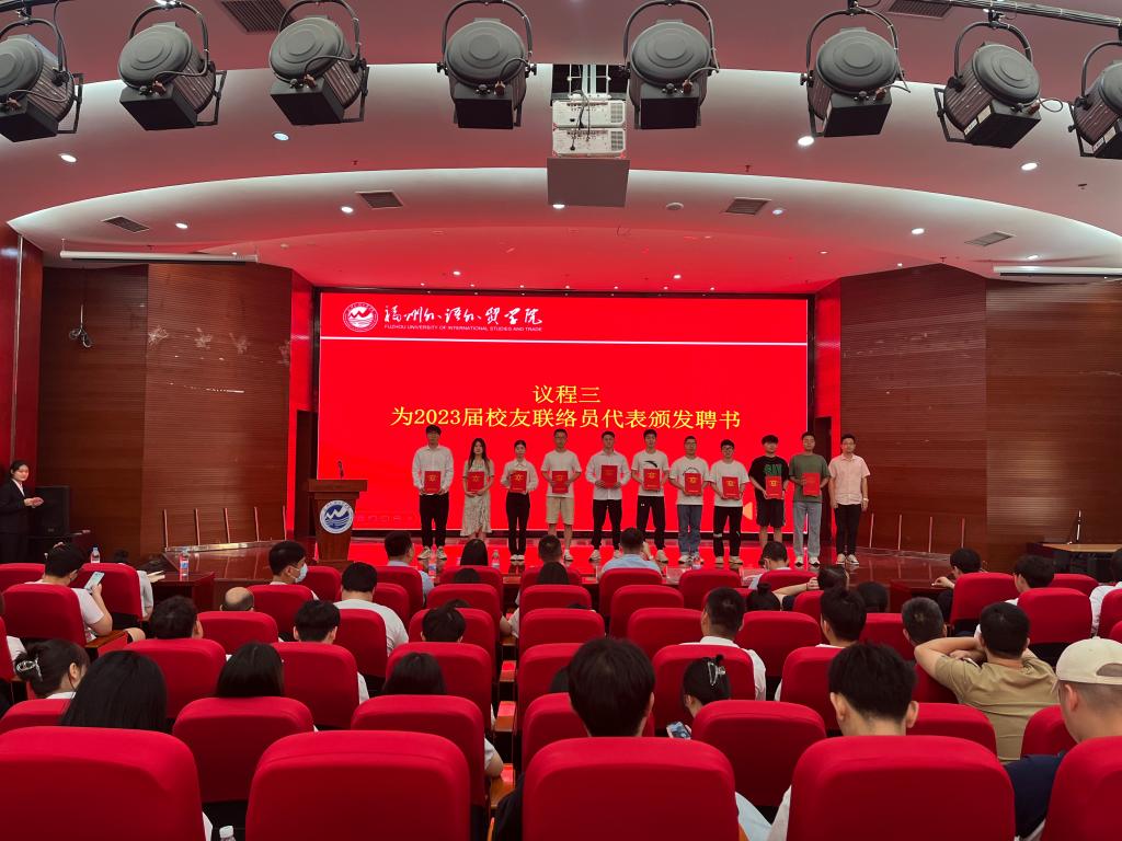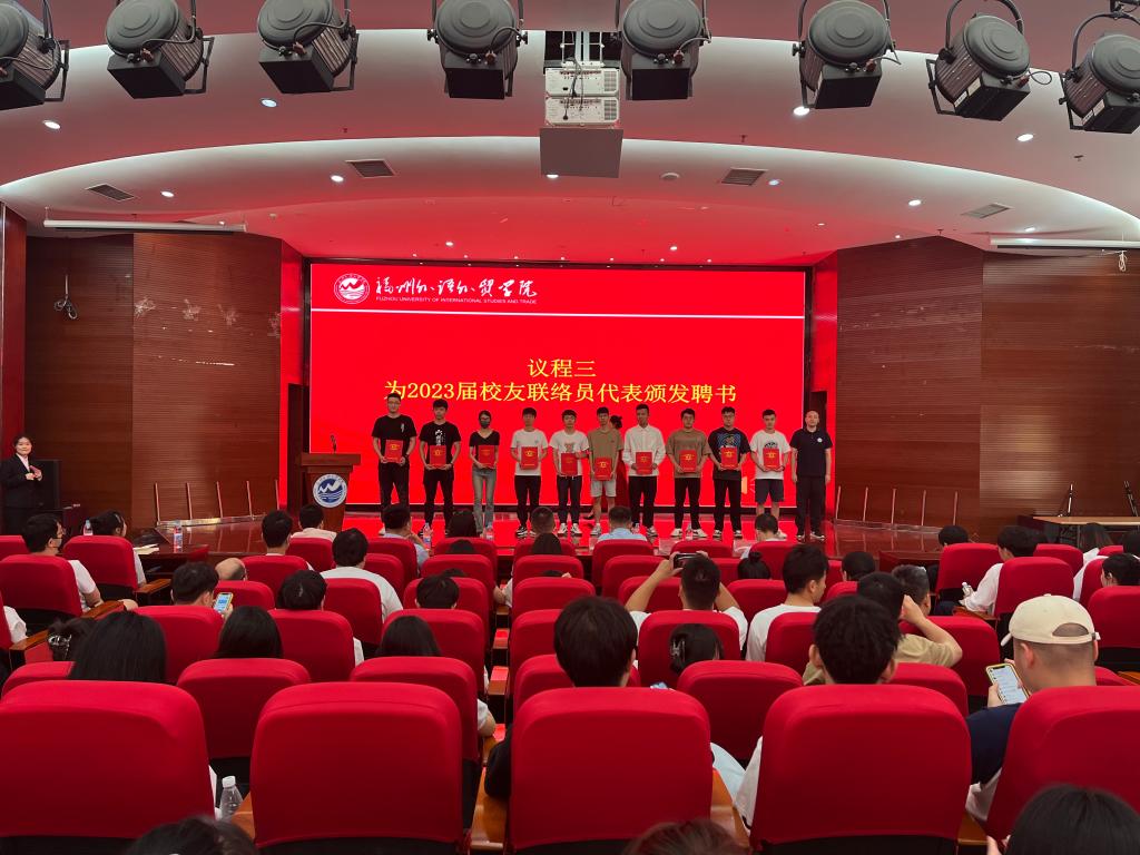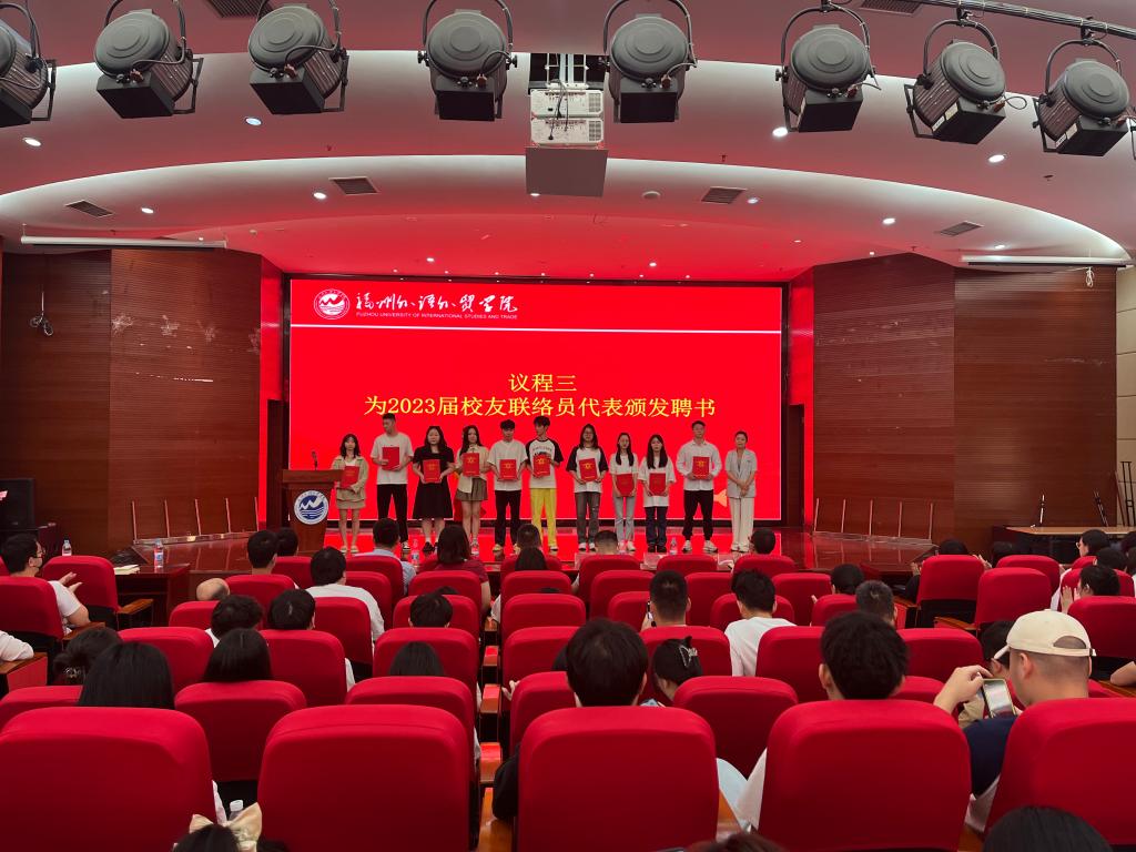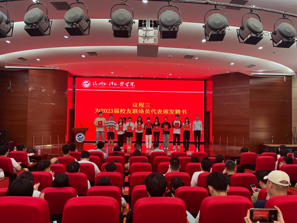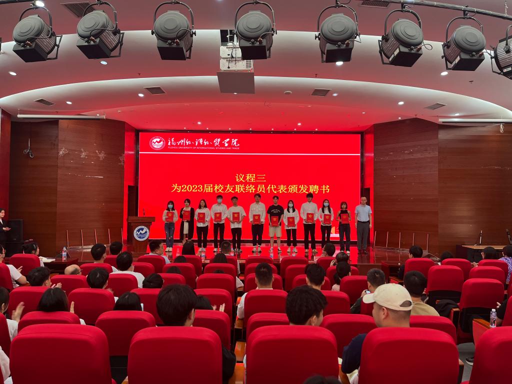 随后,校友联谊会丁玲老师宣读《福州外语外贸学院学生发展中心开元网页版聘任2023届校友联络员的决定》