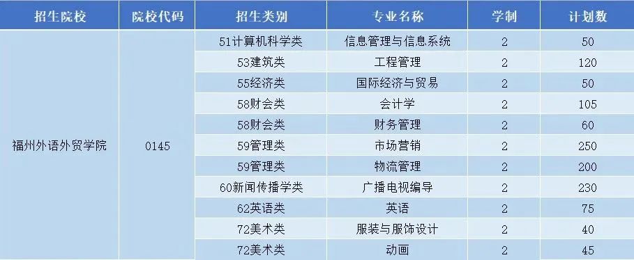 2020年专升本招生计划