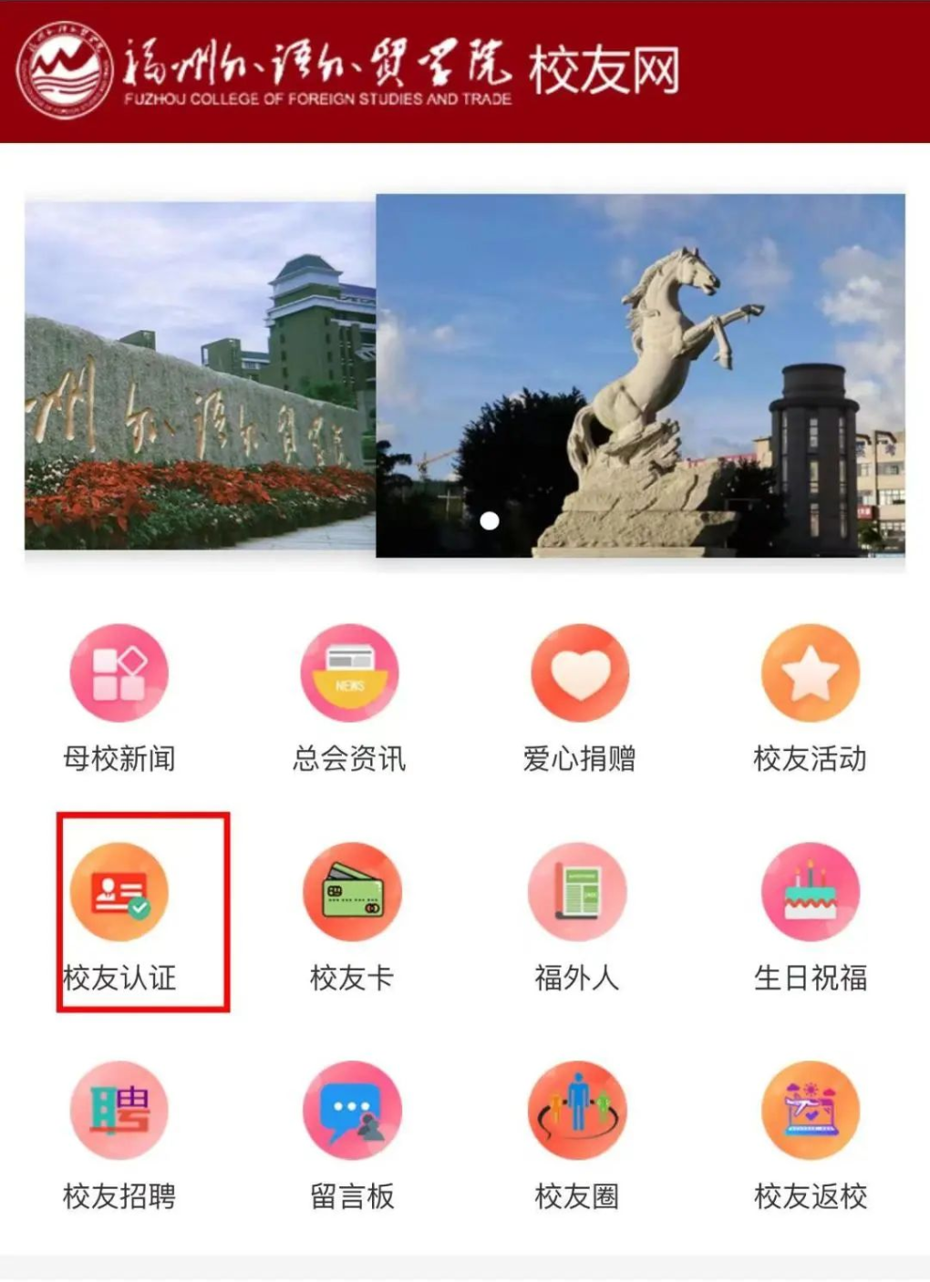 点击“校友认证”