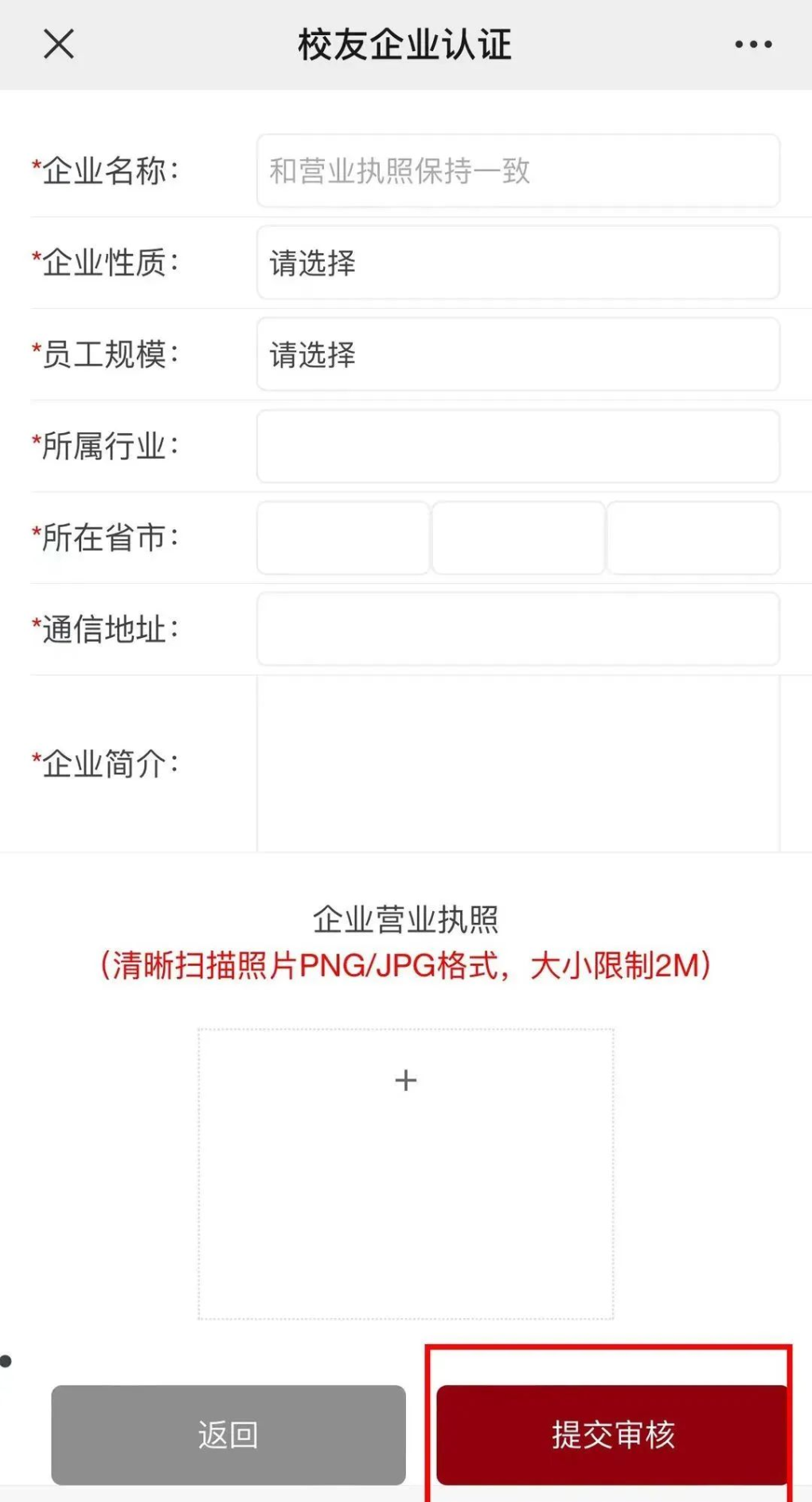 填写完成后点击“提交审核”