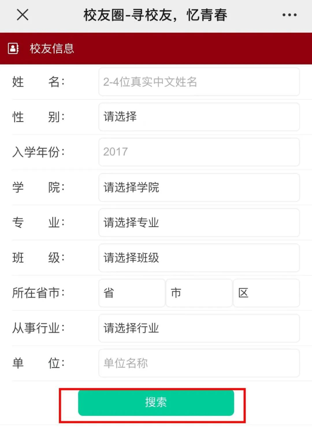 这里会直接完善校友信息