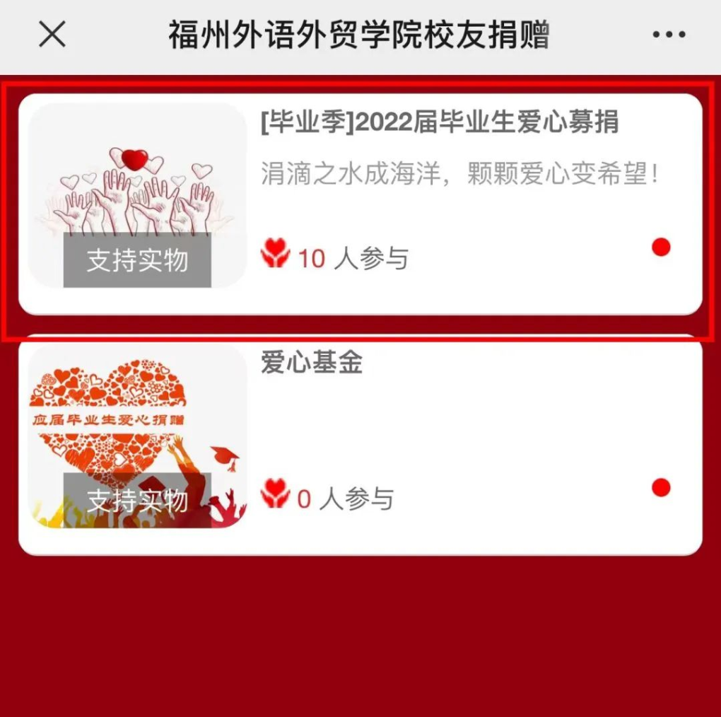 进入页面选择“微信捐赠”或“实物捐赠”