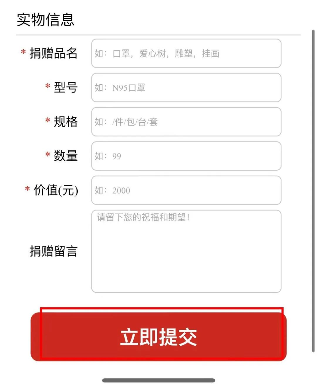 实物捐赠