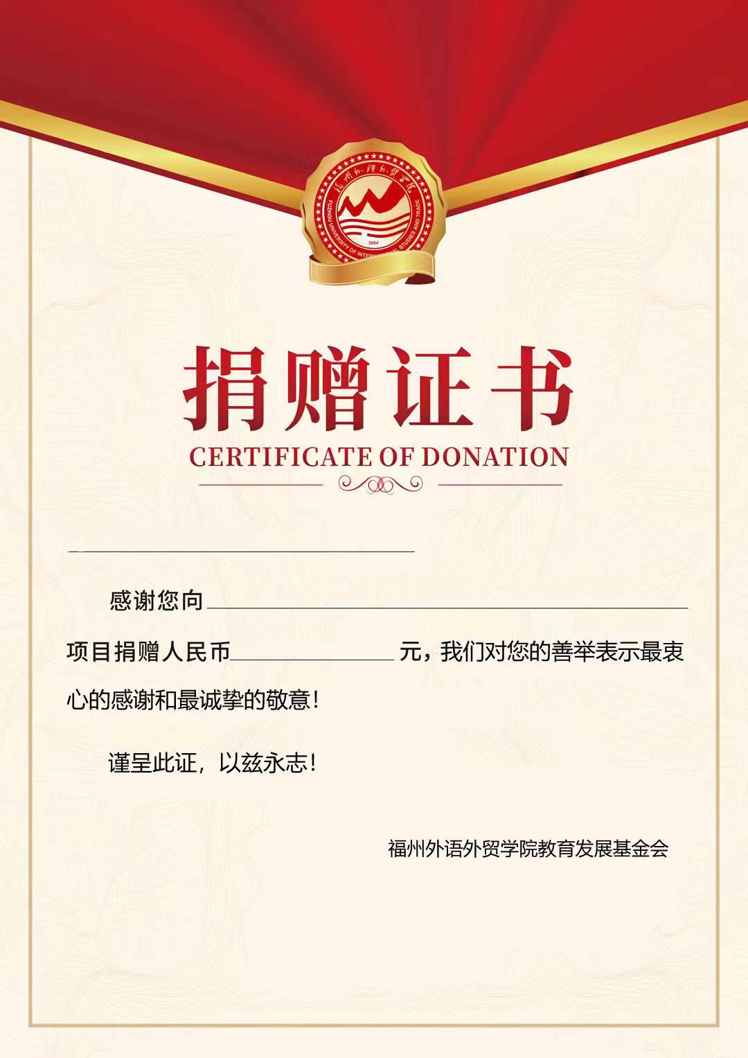 由“福州外语外贸学院教育发展基金会”