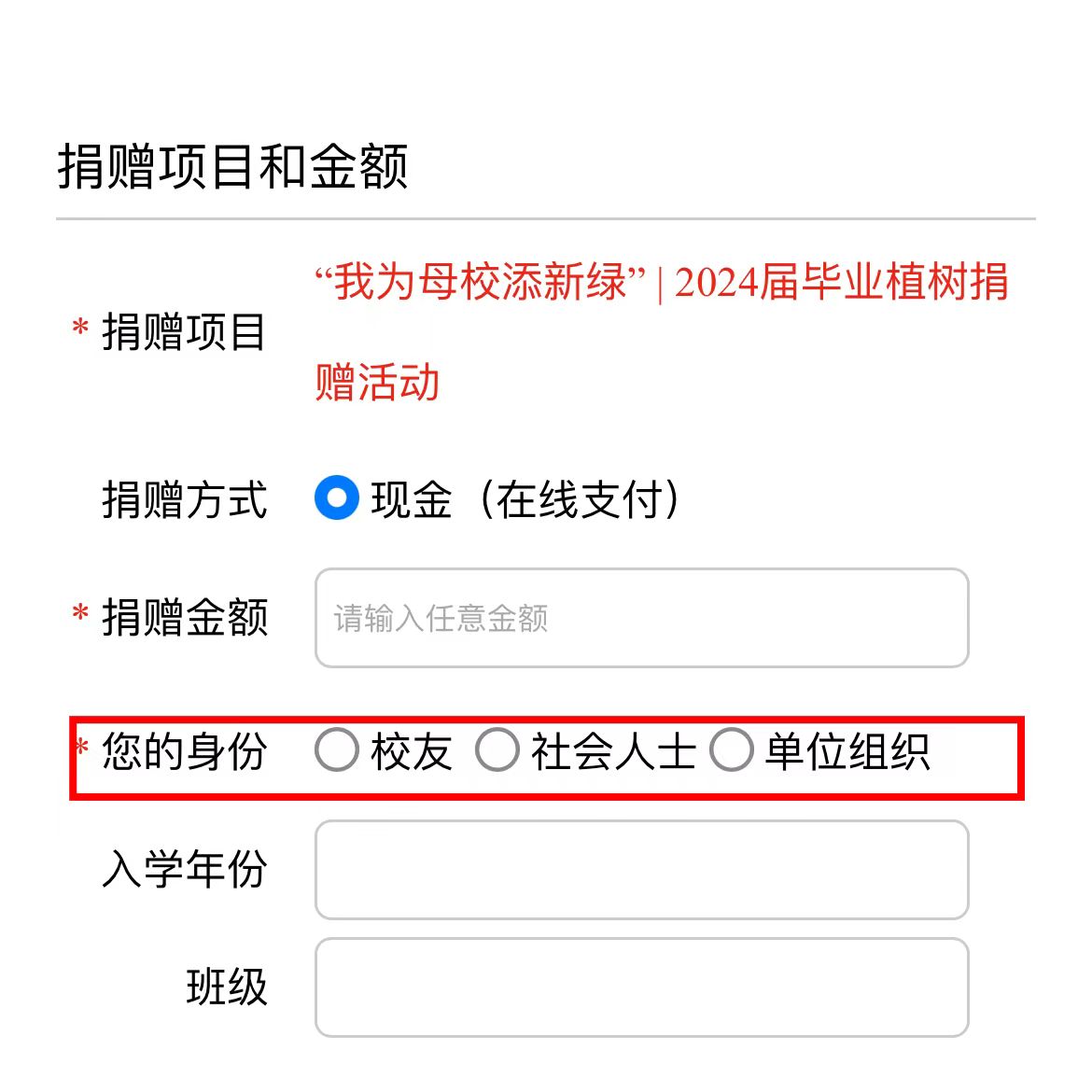 选择捐赠身份