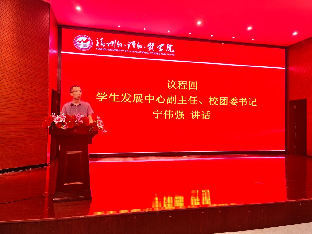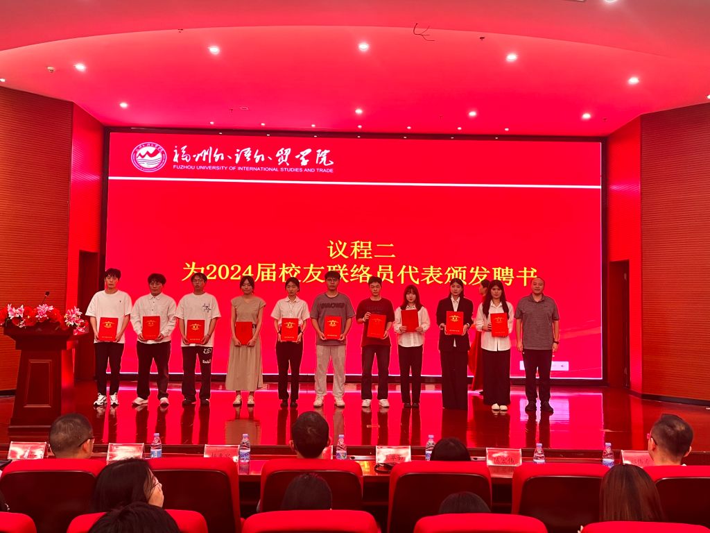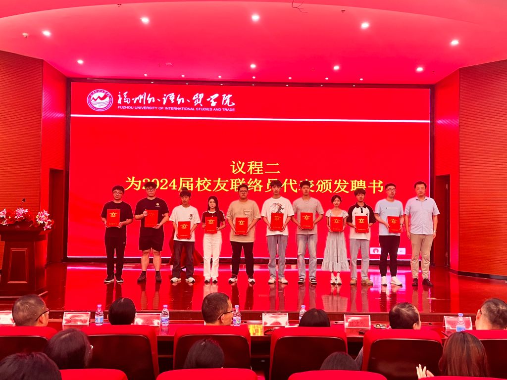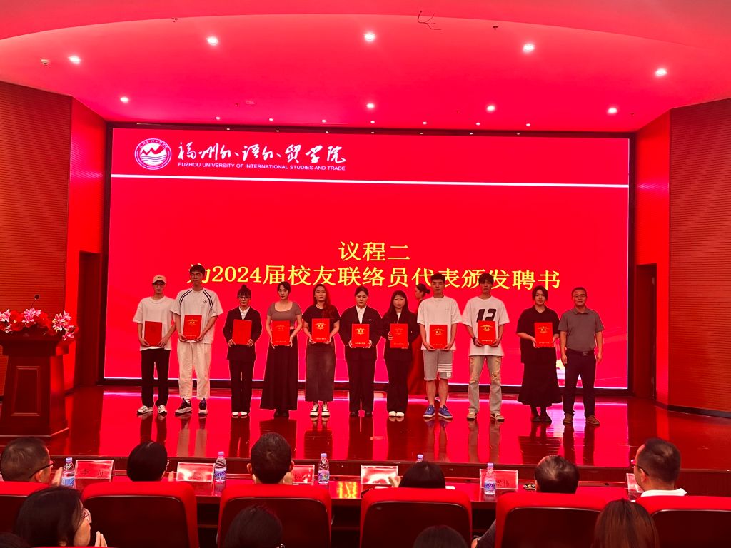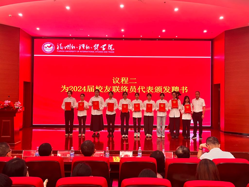 6月12日下午,福州外语外贸学院2024届校友联络员聘任仪式在学术报告厅举行。学生发展中心副主任、校团委书记宁伟强,各学院分党委书记、副院长,办公室副主任,校友工作负责老师以及2024届毕业生校友联络员、毕业生代表等参加仪式。