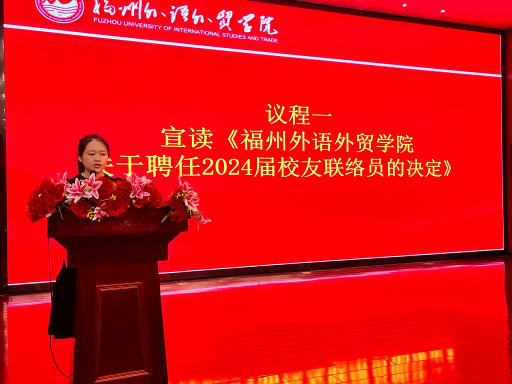 宣读《福州外语外贸学院学生发展中心开元网页版聘任2024届校友联络员的决定》