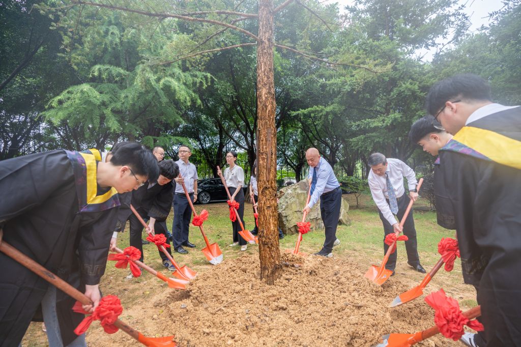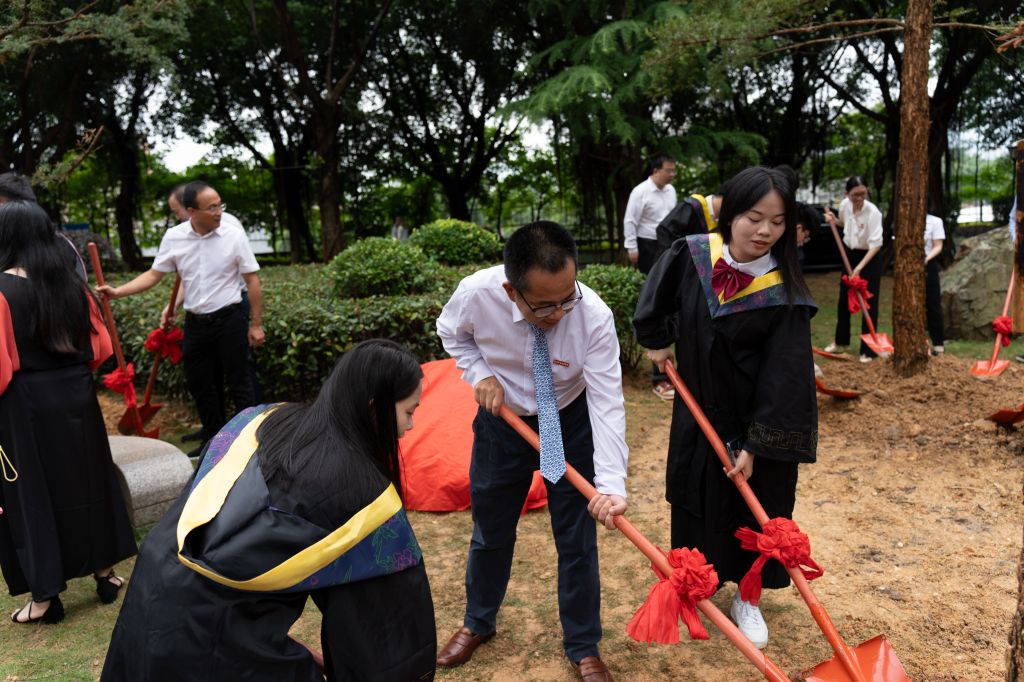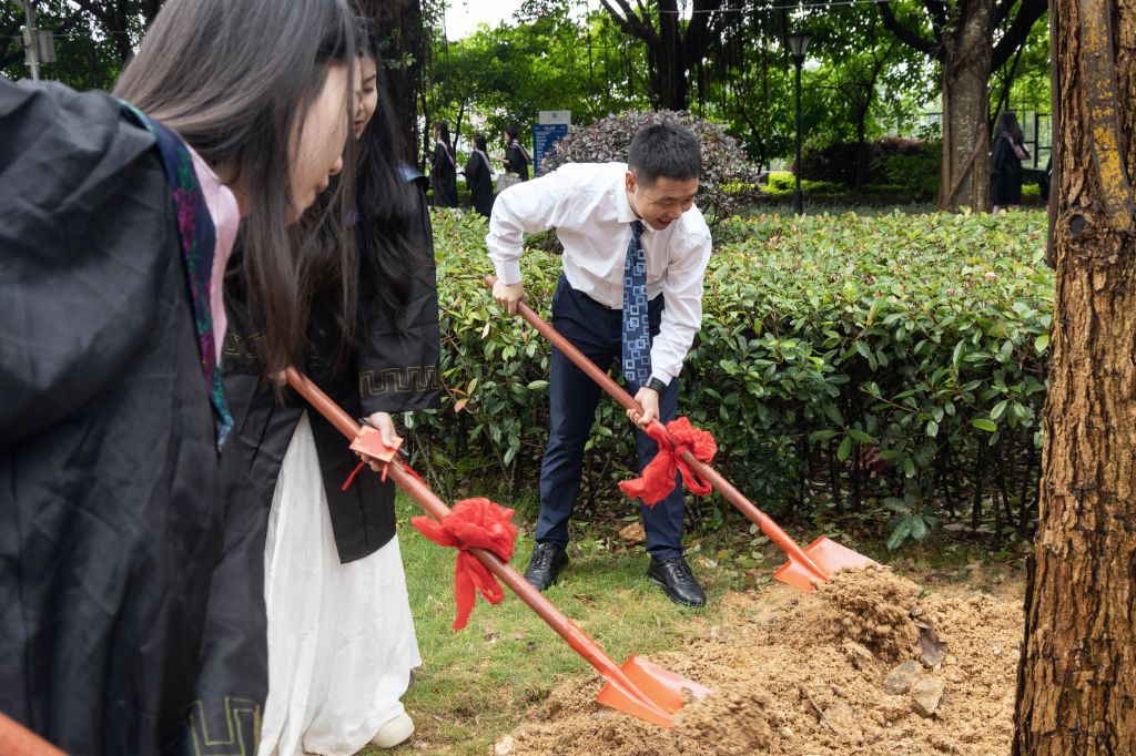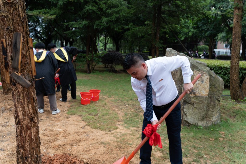 校领导与毕业生代表共同植下毕业生为母校捐赠的“毕业生纪念林”。“以梦为马,行远自迩”,期待若干年后,昔日这些植树人载誉归来,在这片毕业林再相逢!并祝愿毕业生们前程似锦,一帆风顺