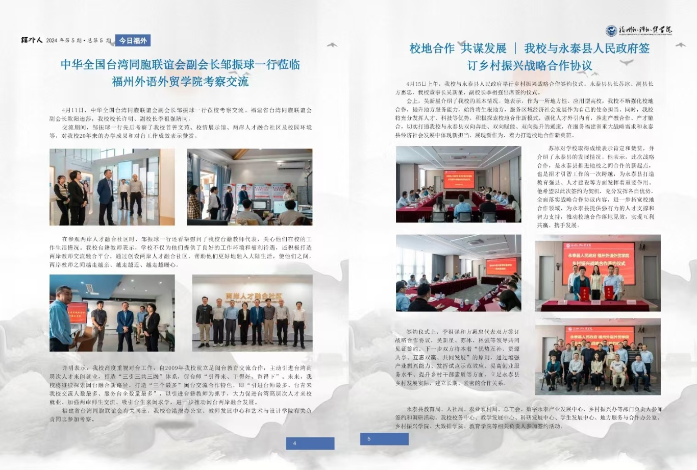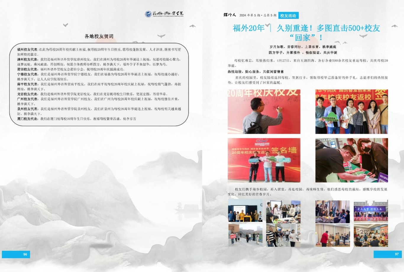 方法三:请在福州外语外贸学院校友会微信平台后台留言,格式为“年级+专业+姓名+所在城市/单位+邮箱地址”。第5期《福外人》电子刊将通过电子邮件的方式发送至您的邮箱中。