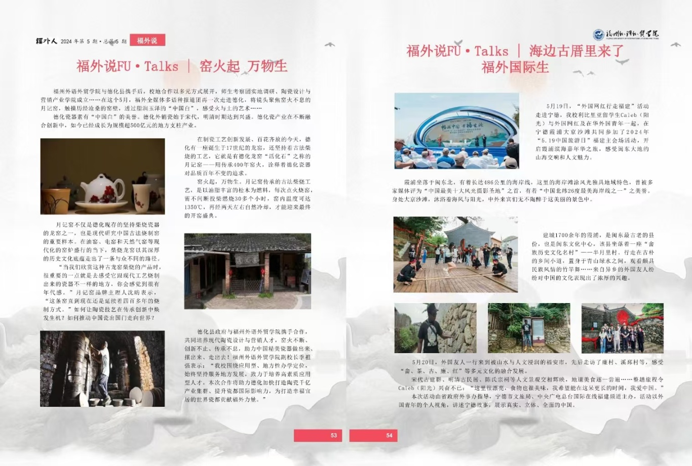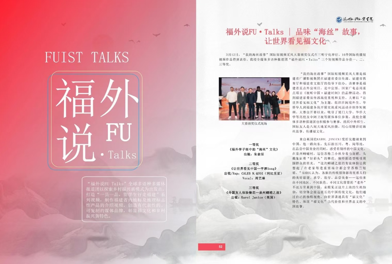 “福外说FU Talks”全球多语种多媒体报道团以探索乡村振兴新模式为出发点,打造“一县一品,留学生行走福建”系列视频,制作福建省内地标及地理标志性产品的介绍视频,创造有代表性的、可复制的媒体品牌,彰显福文化和乡村振兴新特色。