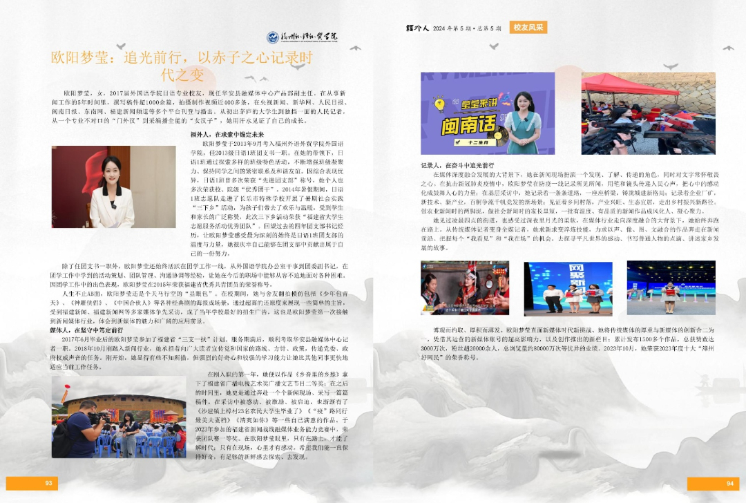 近年来,福外培育出一批又一批优秀的校友,他们在各自的岗位上无私奉献、贡献才智,用自己的业绩和成就传播了福外精神。让我们一同倾听他们的声音,走近他们的精神风貌和事业历程。