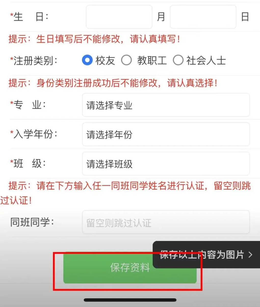 完成后点击“保存资料”