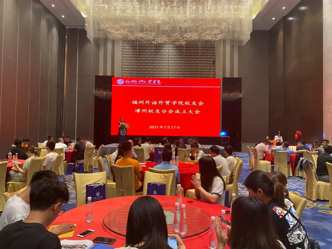 7 月17日,福州外语外贸学院校友会漳州校友分会成立大会在漳州召开,党委副书记、副校长、校友会会长徐国立,学生发展中心主任、各学院分党委书记、校友总会相关同志、教师代表,漳州、泉州地区校友代表共100余人出席了成立大会,共同见证我校校友会漳州校友分会的正式成立。