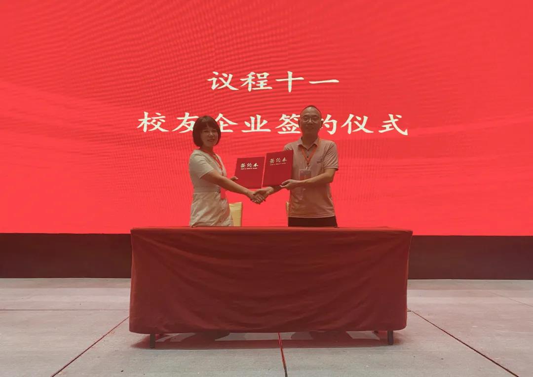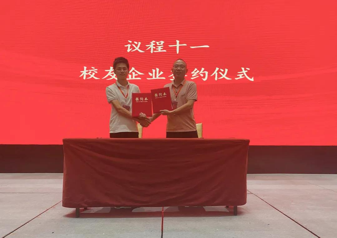 徐国立代表学校与漳州市百事得家具有限公司、漳州琪晟文化传媒有限公司两家校友企业签订了校企合作协议。