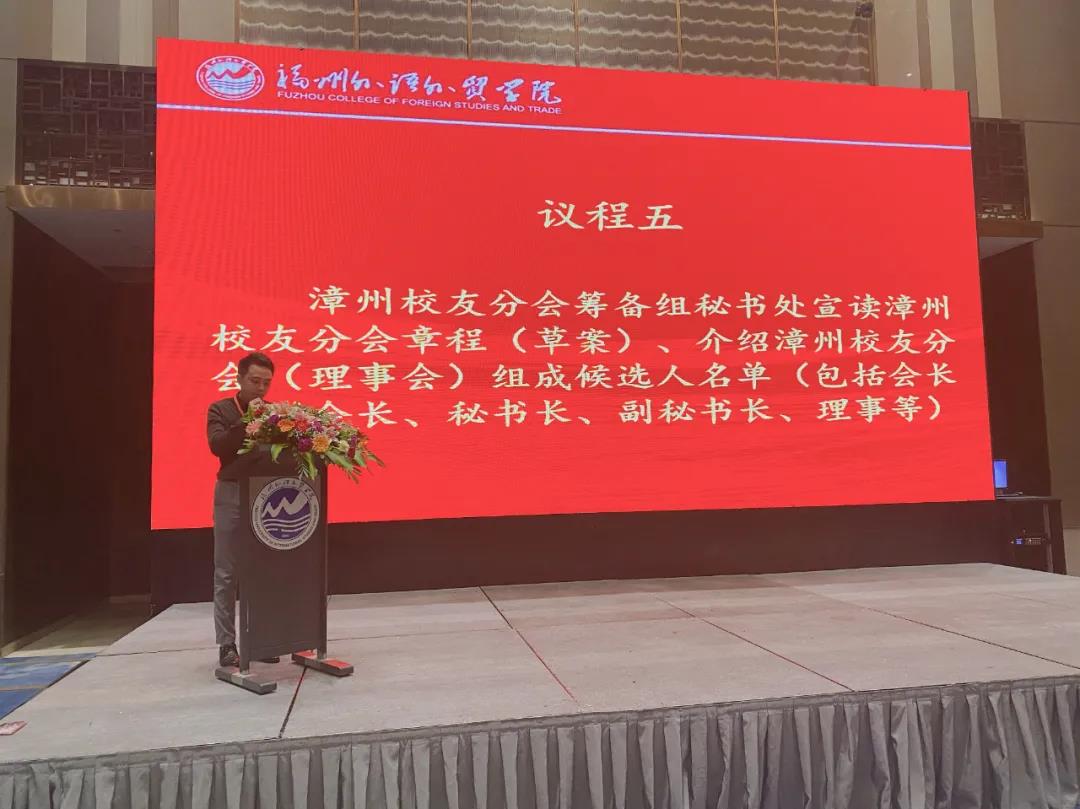 大会宣读了《福州外语外贸学院校友会开元网页版成立漳州校友分会的批复》;听取了《福州外语外贸学院校友会漳州校友分会筹备工作报告》;审议、表决并通过了《福州外语外贸学院校友会漳州校友分会章程》、《福州外语外贸学院校友会漳州校友分会(理事会)组成候选人名单》,选举产生福州外语外贸学院校友会漳州校友分会(理事会)组织机构,2009届校友陈小燕任第一届会长。