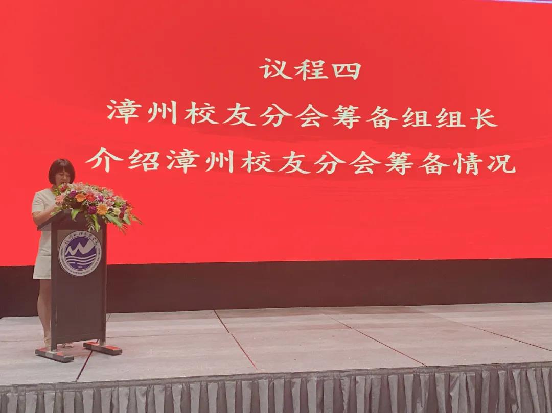 泉州校友分会会长、2010届校友李荣聪代表校友会泉州分会上台致贺词,对漳州校友分会的成立表示热烈祝贺。漳州校友分会新当选会长陈小燕上台讲话,她表示,漳州校友分会的成立,为广大漳州校友搭建了一个增进友谊、联系交流、反哺母校、回报社会的平台,这是一个良好的开端和成功的起步。她倡议校友们继续关注和支持母校的发展,通过校友会这个纽带,增进母校与校友、校友与校友之间的情谊,通过整合各方资源,共同进步。