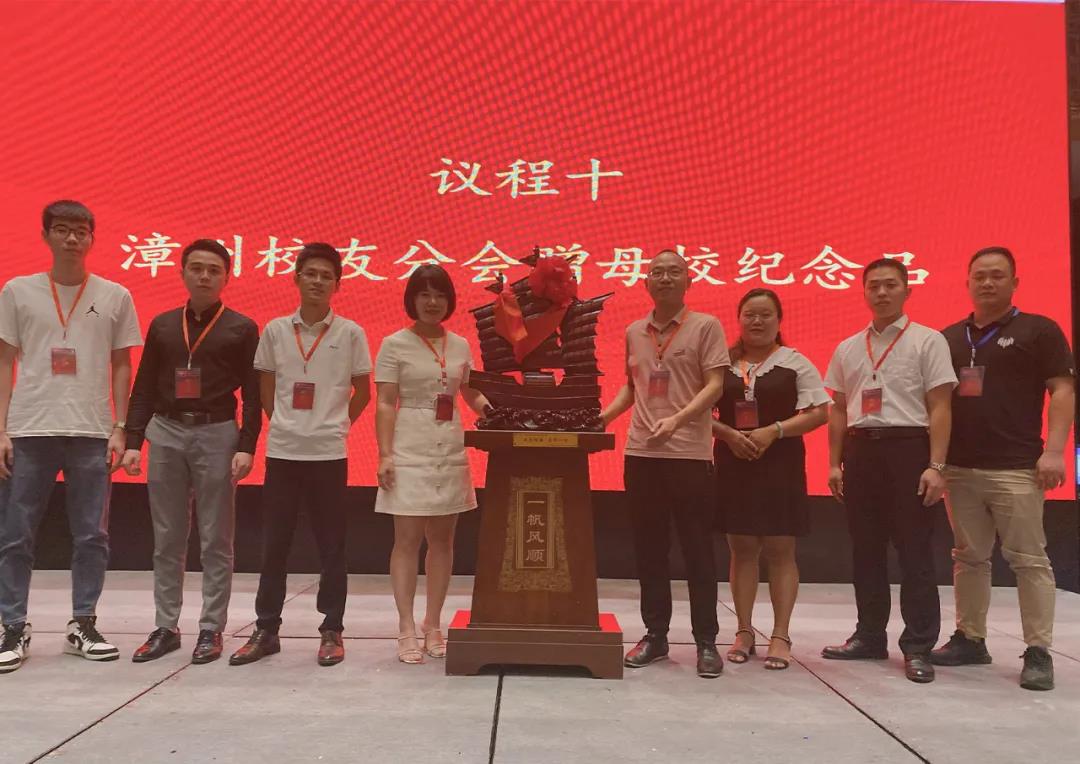 随后,漳州校友分会理事会成员向母校赠予纪念品,并赠言“大爱佑福 善泽八方”,祝福母校教育事业再创新高。